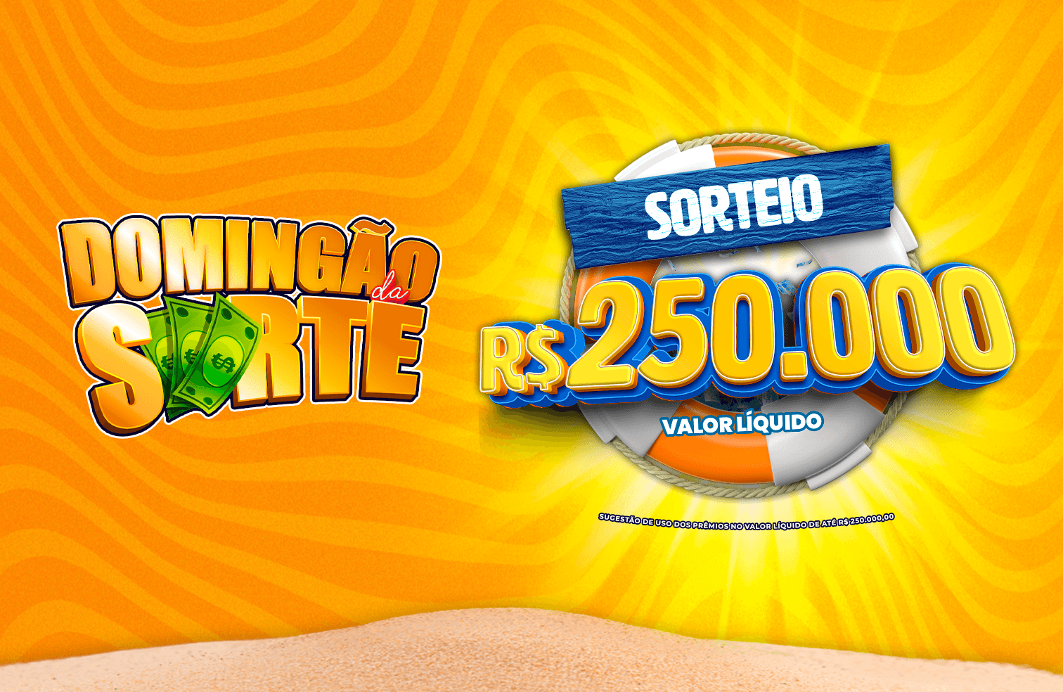 No Domingão da Sorte, você concorre a R$250.000,00 DE UMA SÓ VEZ.